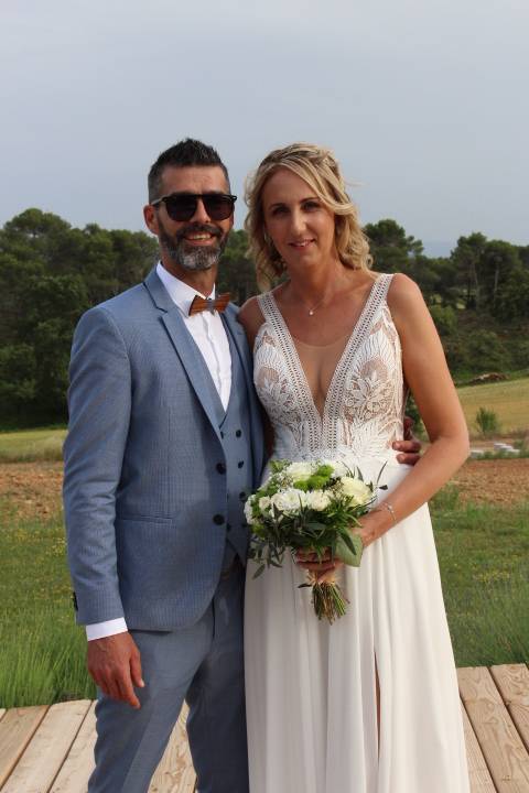 Très belle photo de jeunes mariés, qui se sont dit oui le 04/06/2022 ! La jolie Fanny porte une robe de chez Promesse Tenue nommée AUBRY