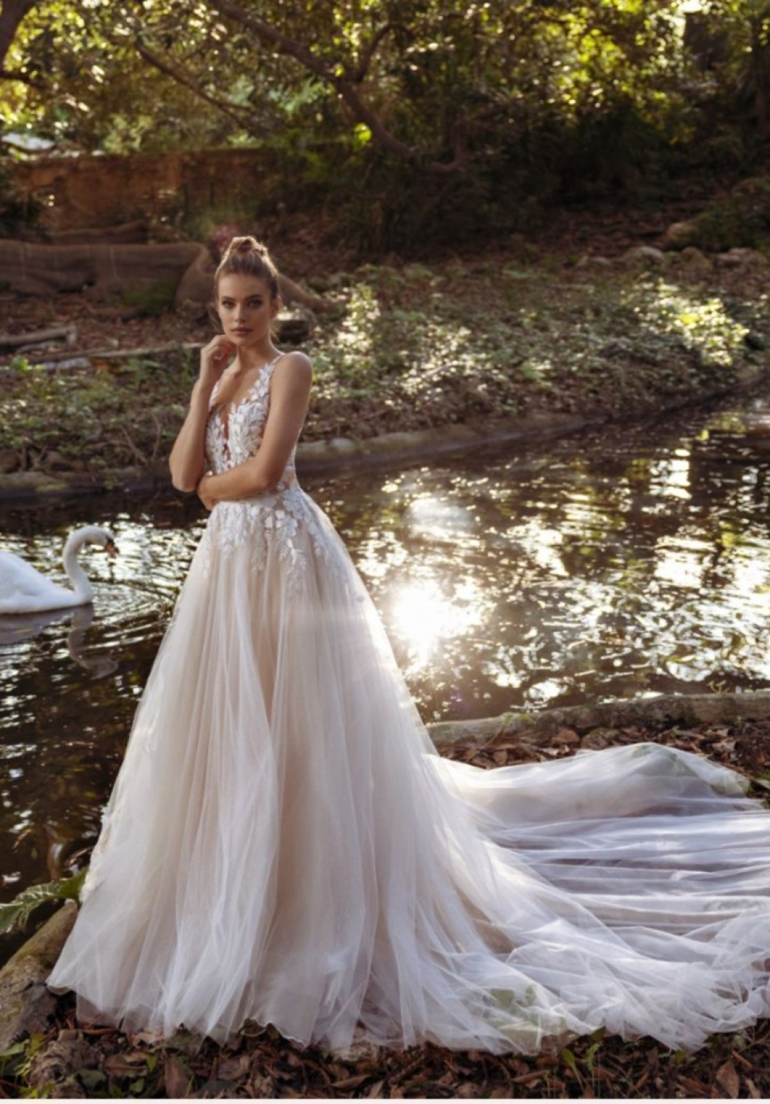 Son bustier travaillé en dentelle fine, et sa jupe en tulle vaporeux lui confère sa légèreté