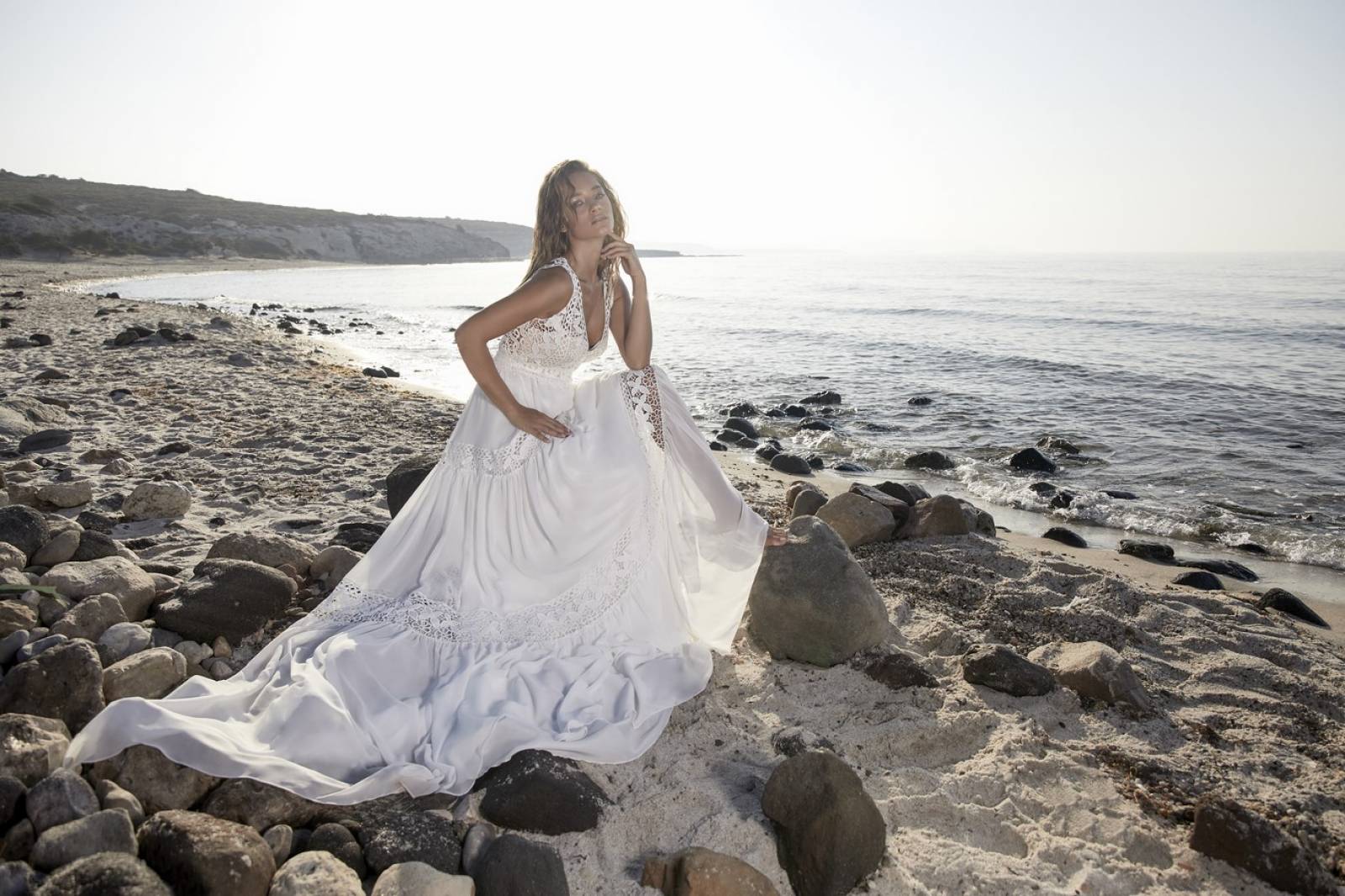 Robe de mariée en mousseline bohème et originale HERVE MARIAGE NON DISPONIBLE