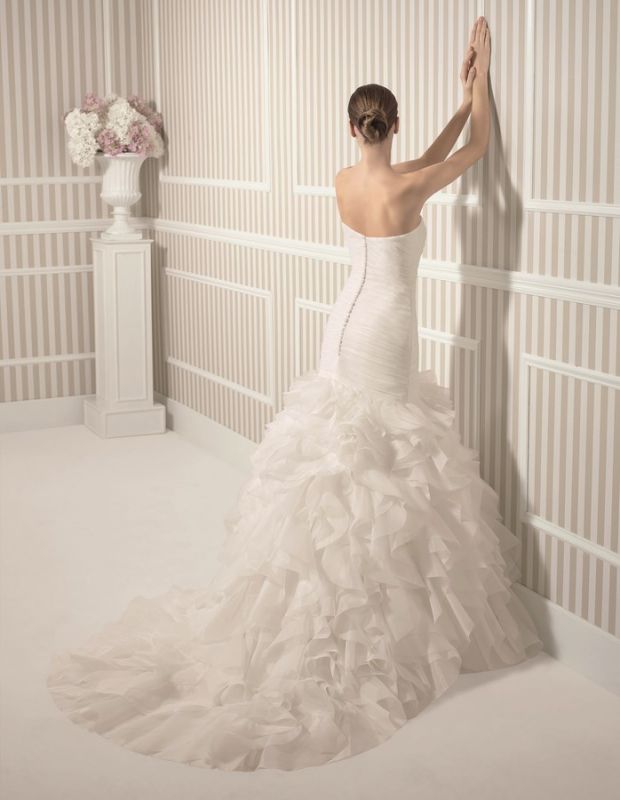 Voici une magnifique robe de mariée de style chic, de forme sirène.