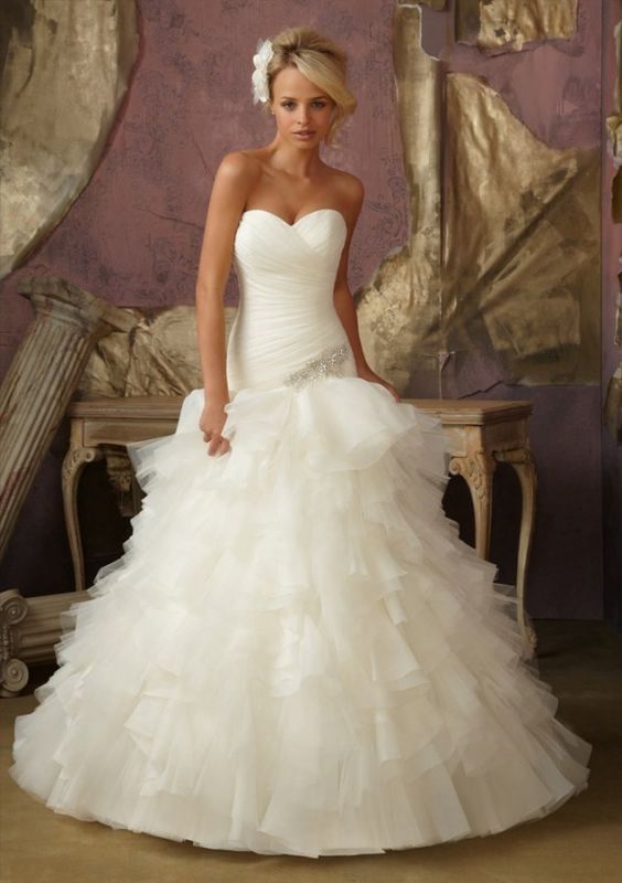le bas est en tulle volumineux et aérien, un modèle moderne et glamour avec une longue traine et un laçage dans le dos