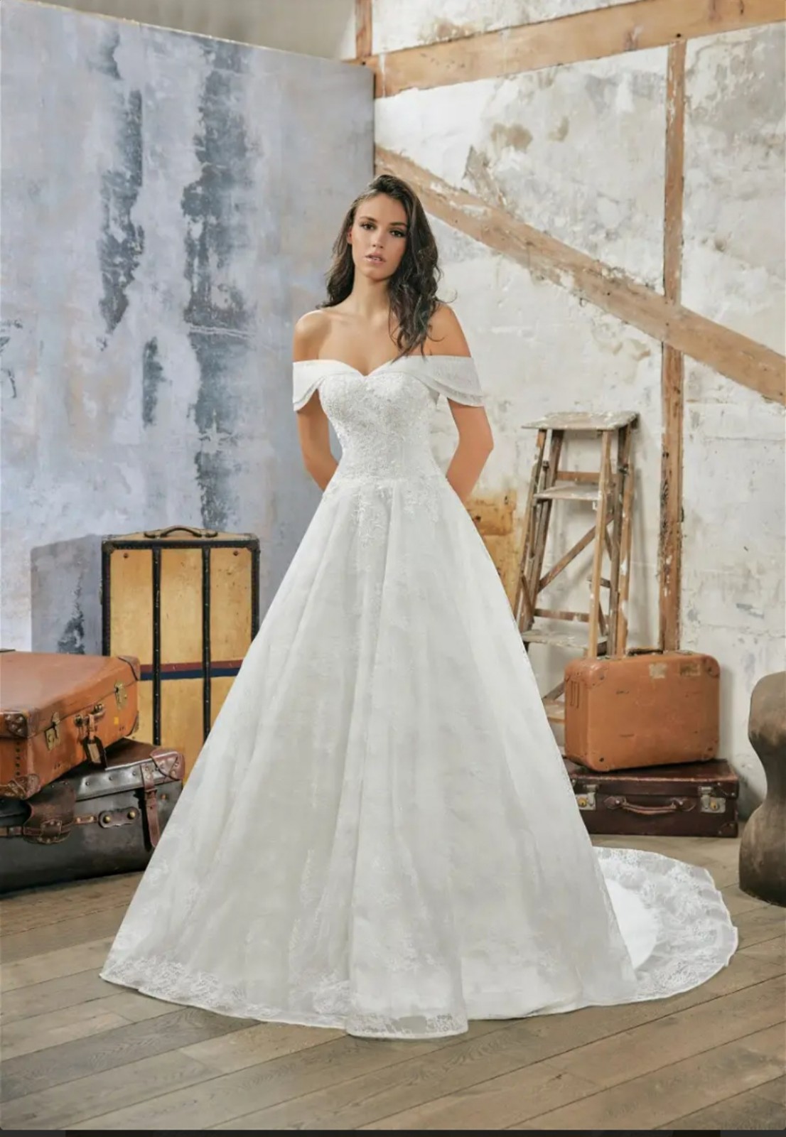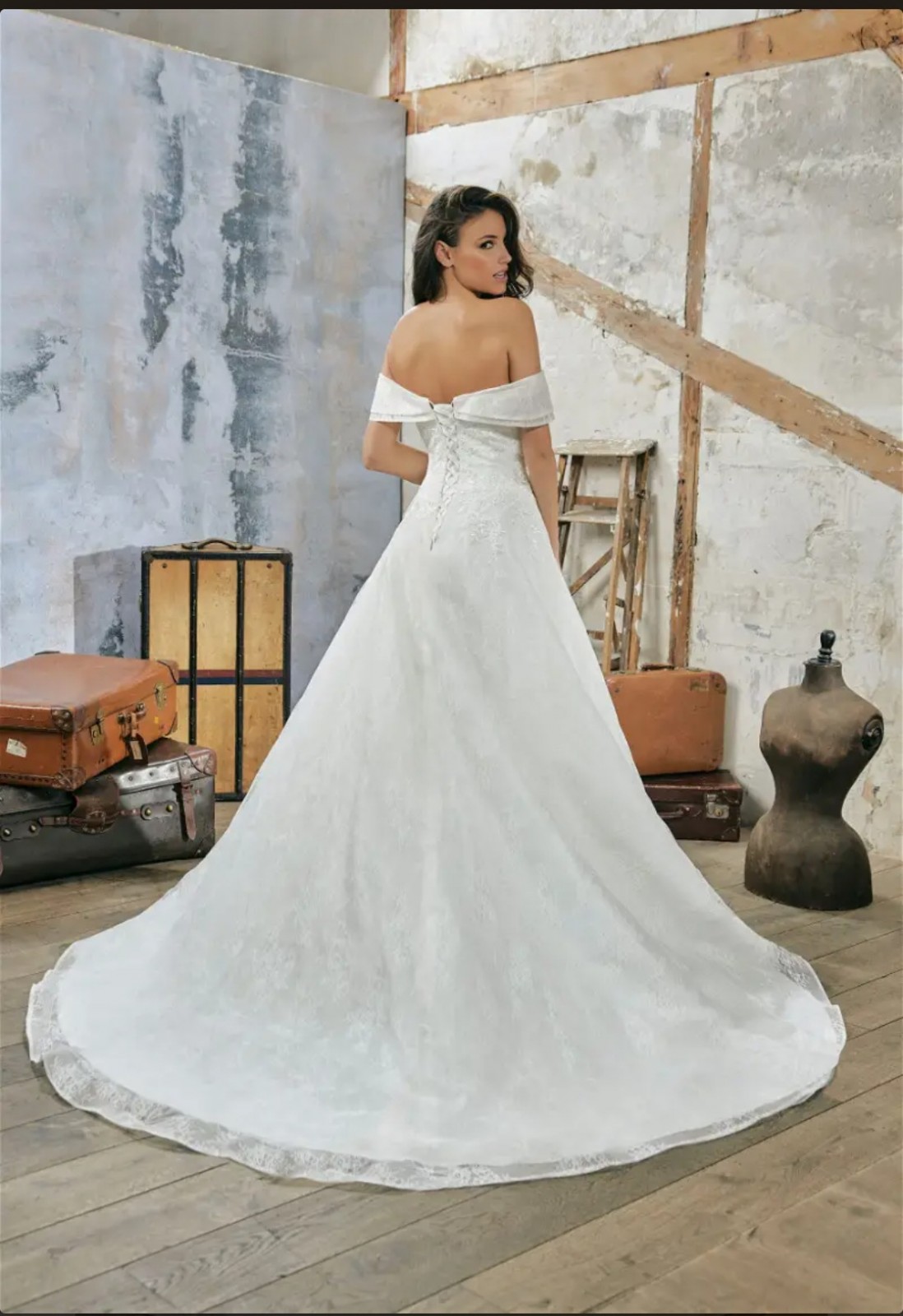 Son encolure bateau sublime votre décolleté, le bustier fait une taille fine tandis que la longue et magnifique traine allonge votre silhouette